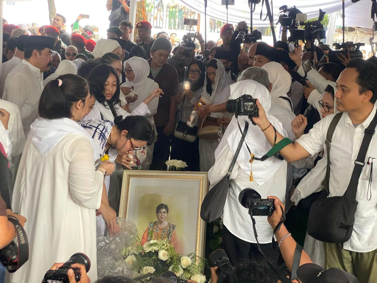 Para pelayat yang datang tidak hanya dari kalangan keluarga dan artis, tapi juga para fans dan masyarakat sekitar.