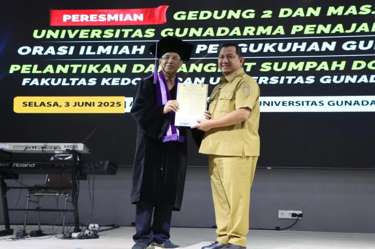 PROPENAJAM.COM – Bupati Penajam Paser Utara (PPU), Mudyat Noor, meresmikan Gedung 2 dan Masjid Kampus Universitas Gunadarma Penajam Paser Utara pada Selasa (3/6/2025). Acara yang berlangsung di auditorium kampus Universitas Gunadarma PPU ini juga dirangkai dengan orasi ilmiah pengukuhan guru besar tetap, serta pelantikan dan angkat sumpah dokter periode IV Fakultas Kedokteran Universitas Gunadarma.